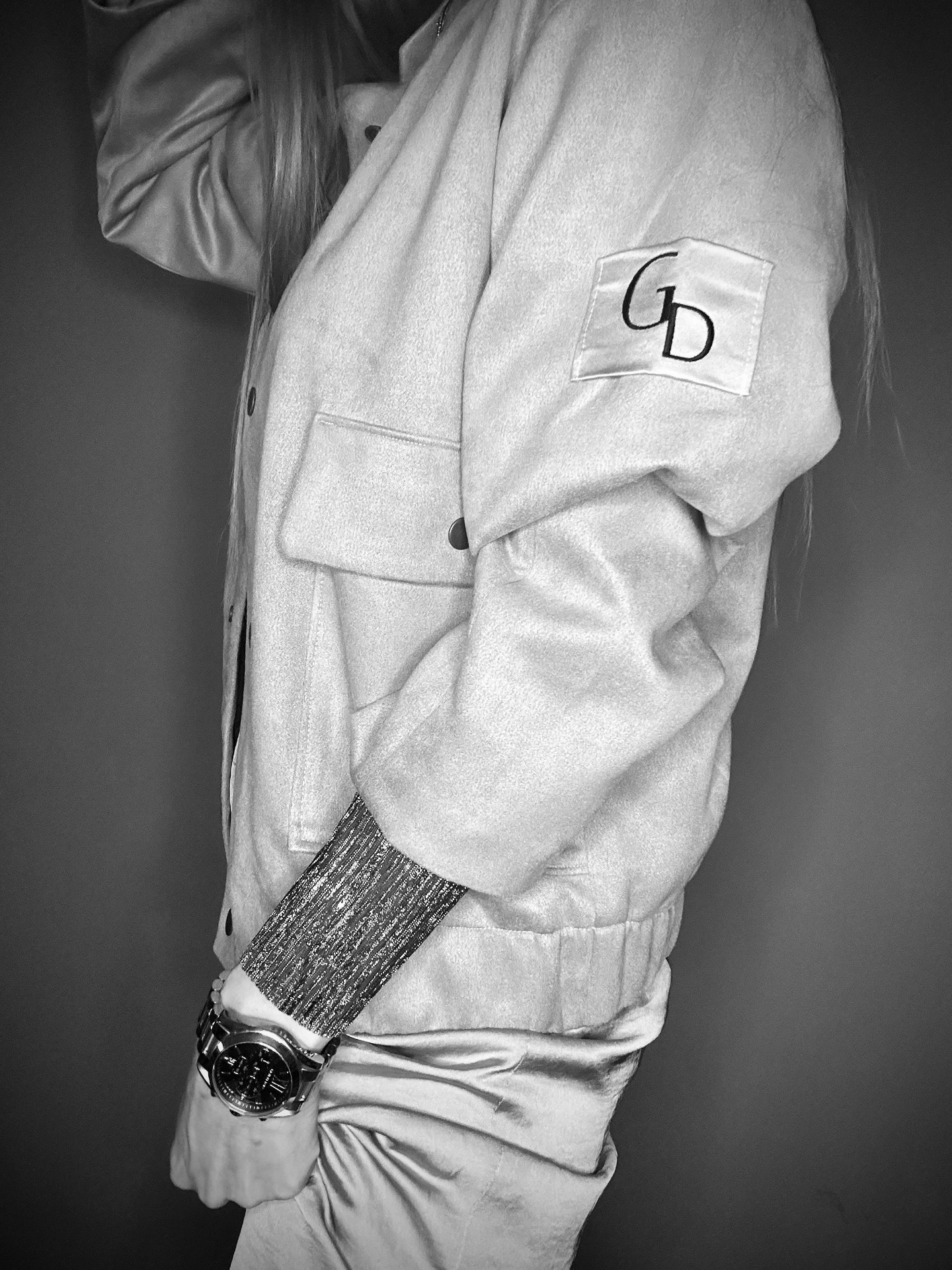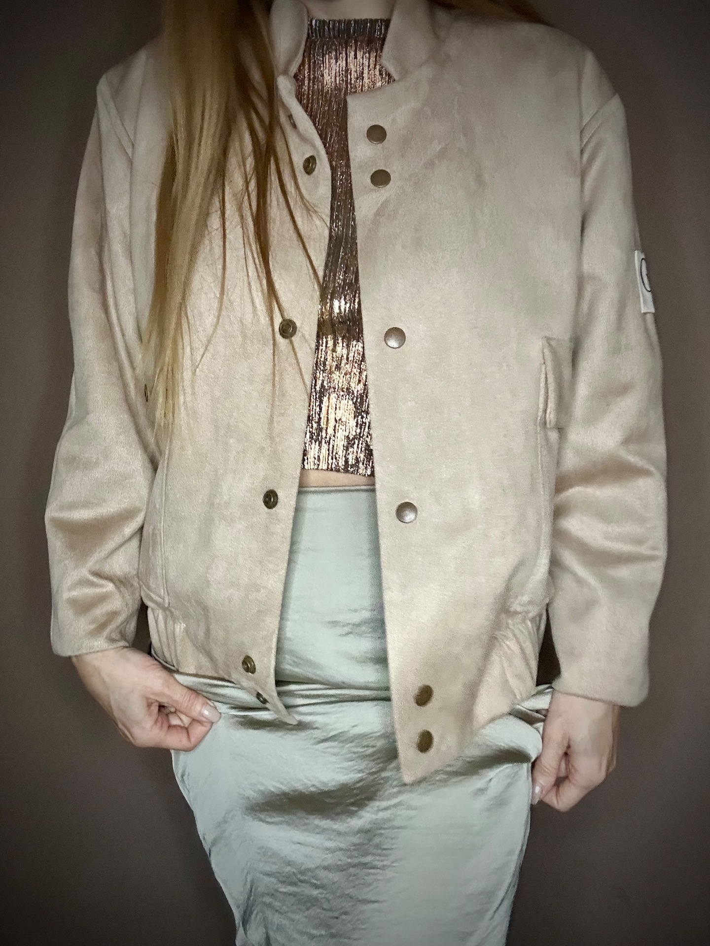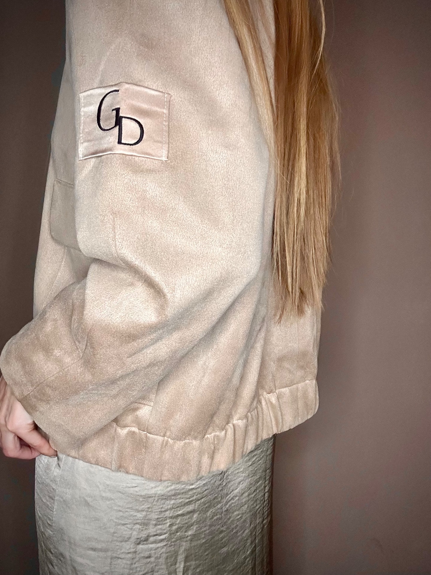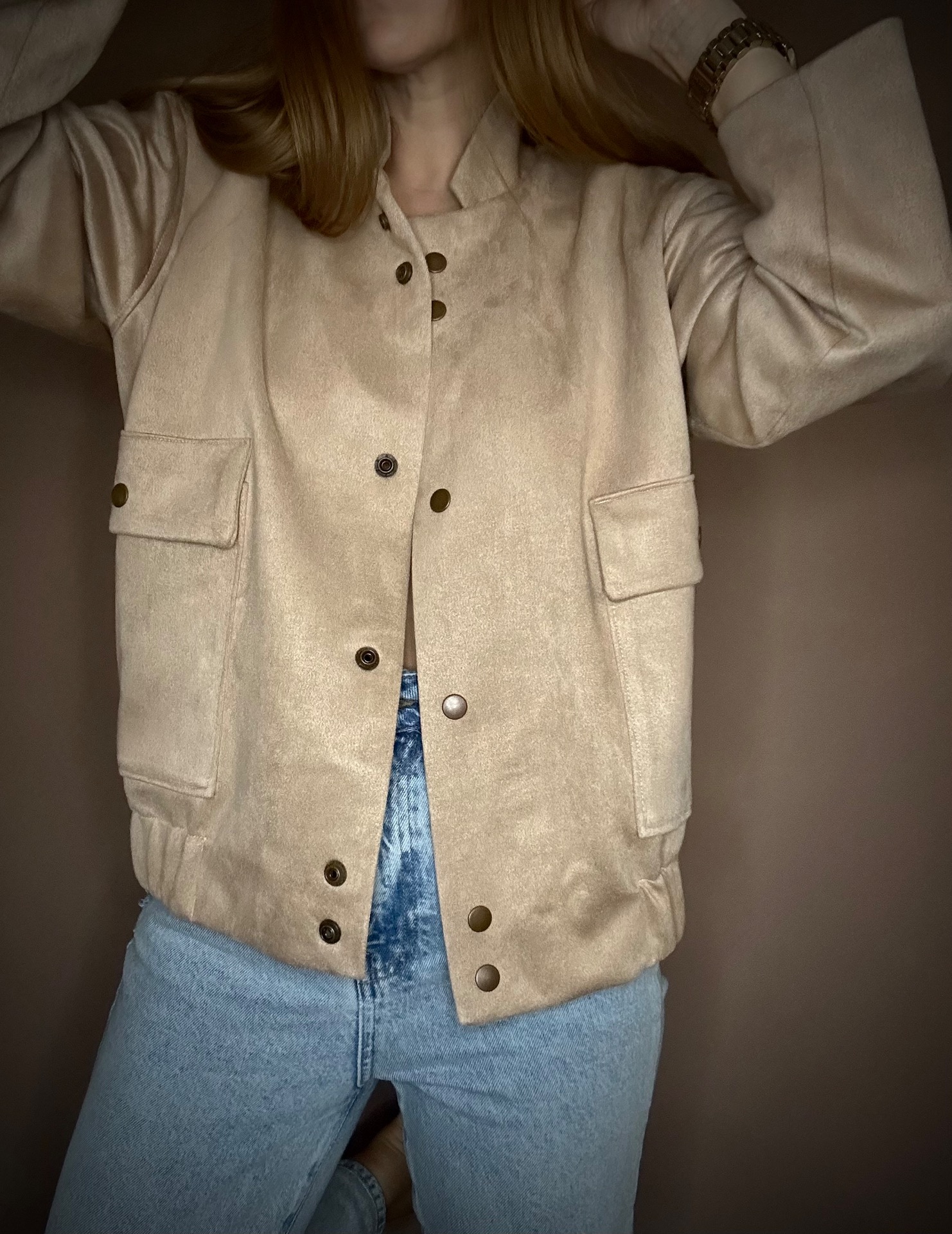 Semiš na JARO, LETNÍ večery a teplejší PODZIM! Tento bombér je doplněn měděnými cvoky a logem.