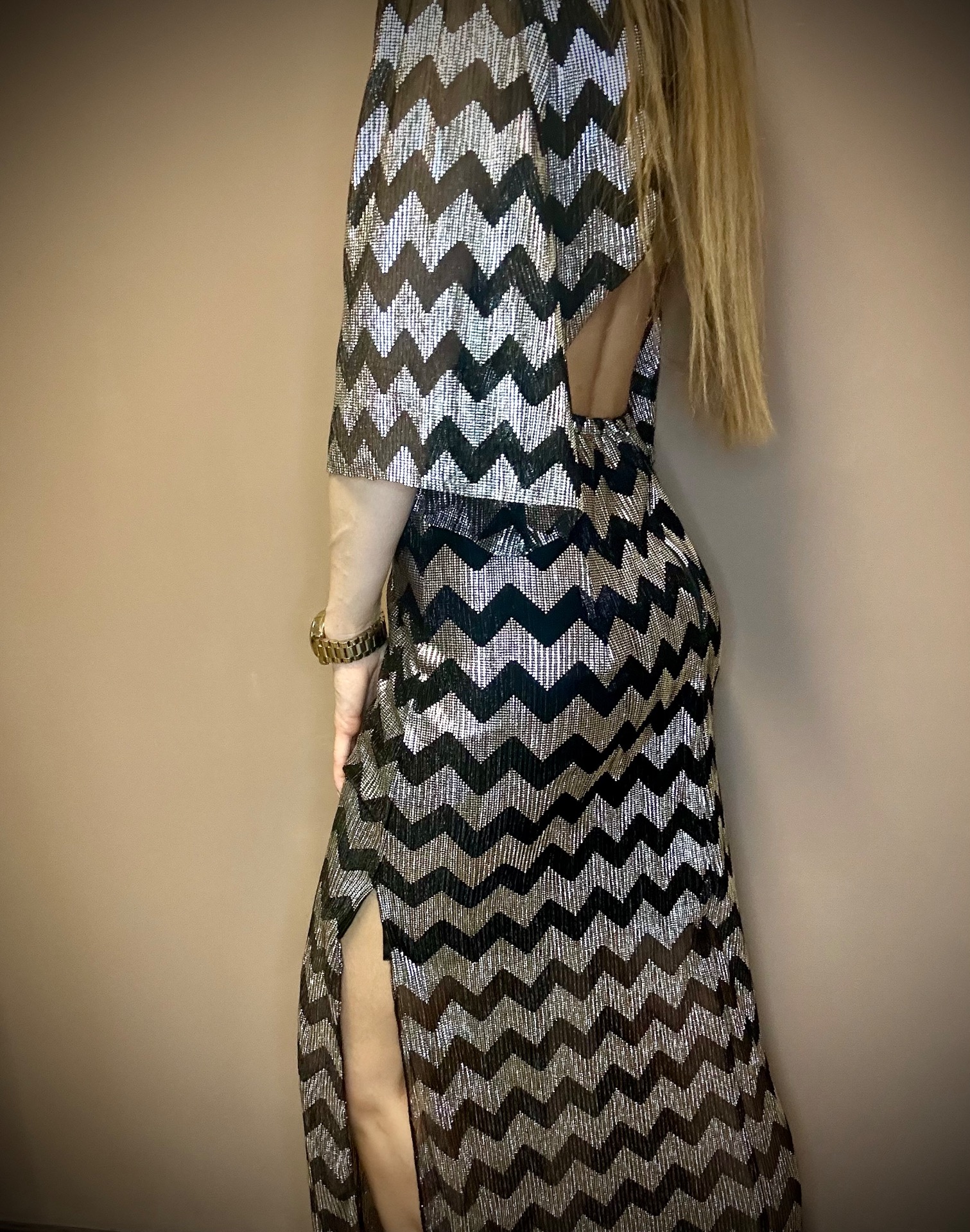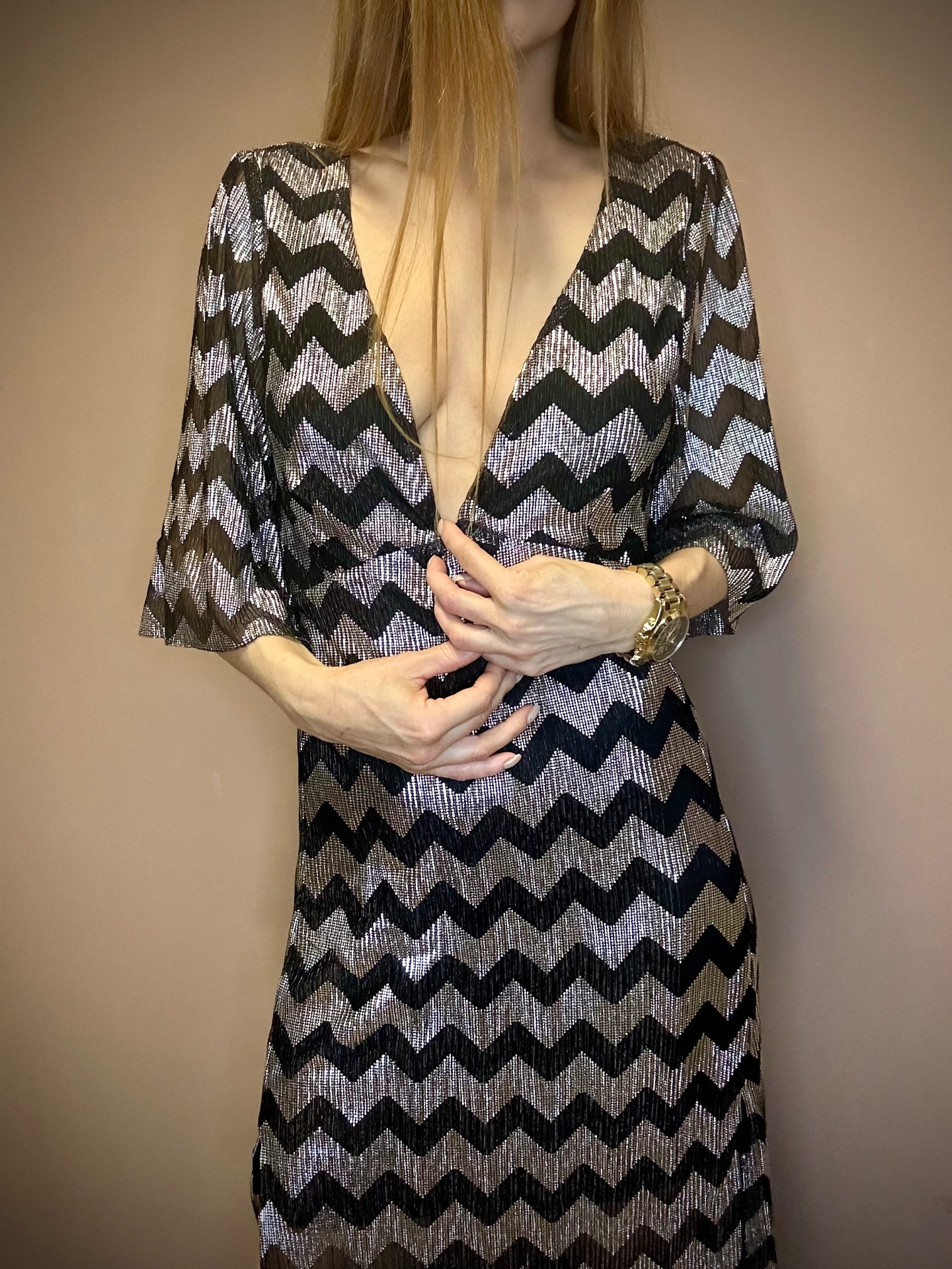 Tyto plísované šaty s výstřihem do V, volnými rukávy a rozparky si hned zamilujete. Nekrčí se, jsou pružné a mají stahující spodničku. Jsou tak lehoučké, že máte pocit, že na sobě nic nemáte.