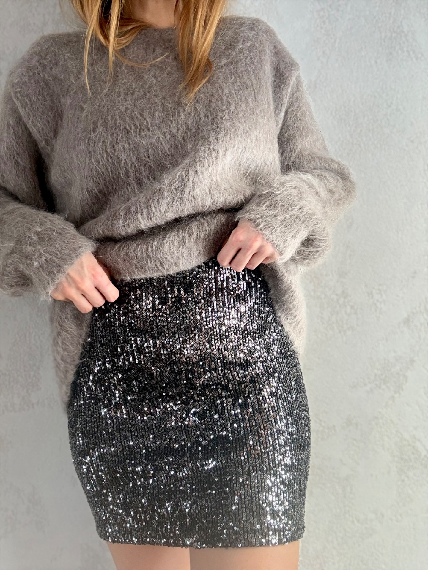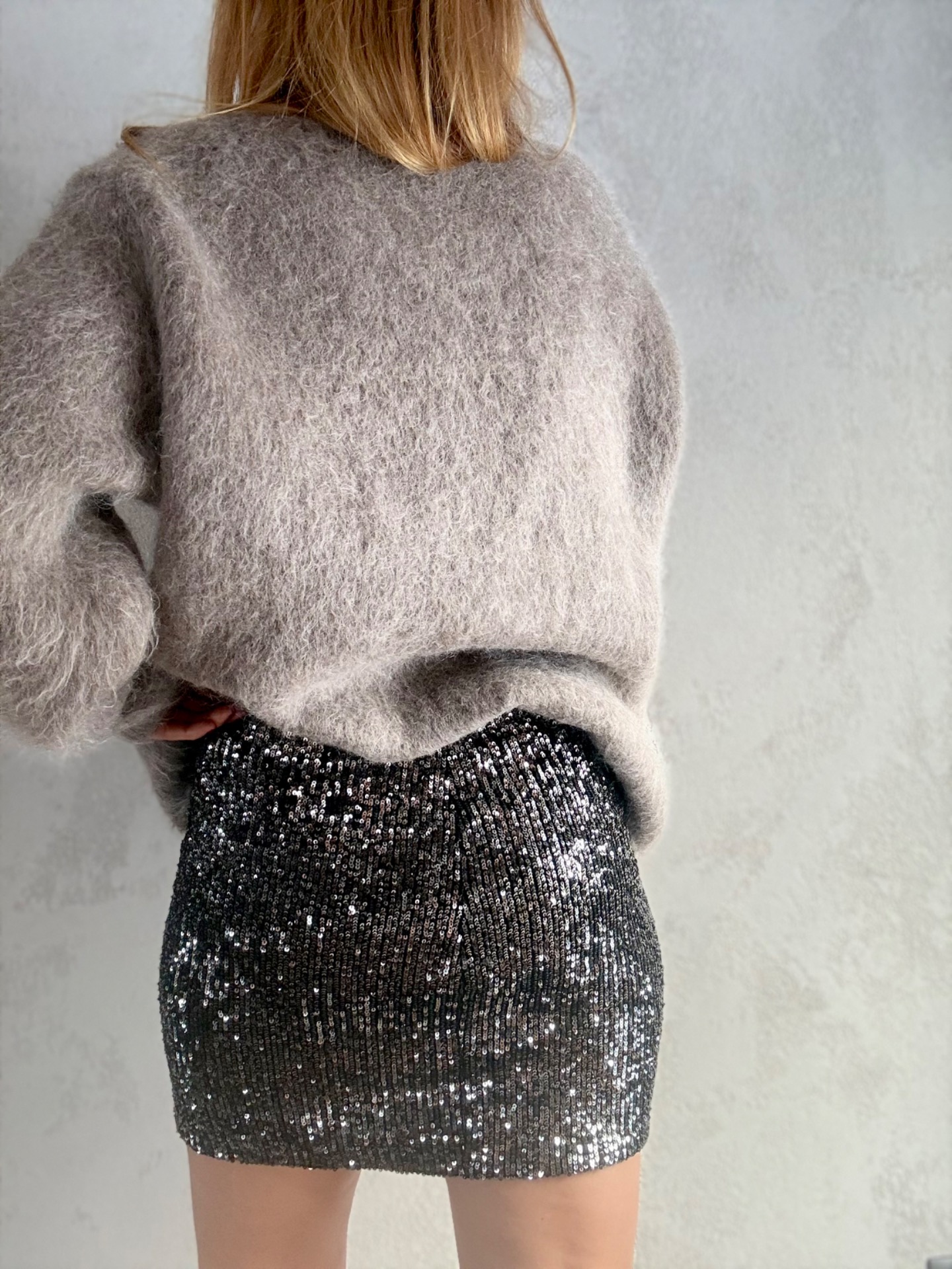 Temně šedá flirtová sukně s velmi pružným základem, který se krásně přizpůsobí postavě. Svislé flitry opticky prodlužují siluetu a lehoučký materiál zajišťuje pohodlí i při celodenním nošení. Ideální volba pro večerní outfit i výrazný denní look.